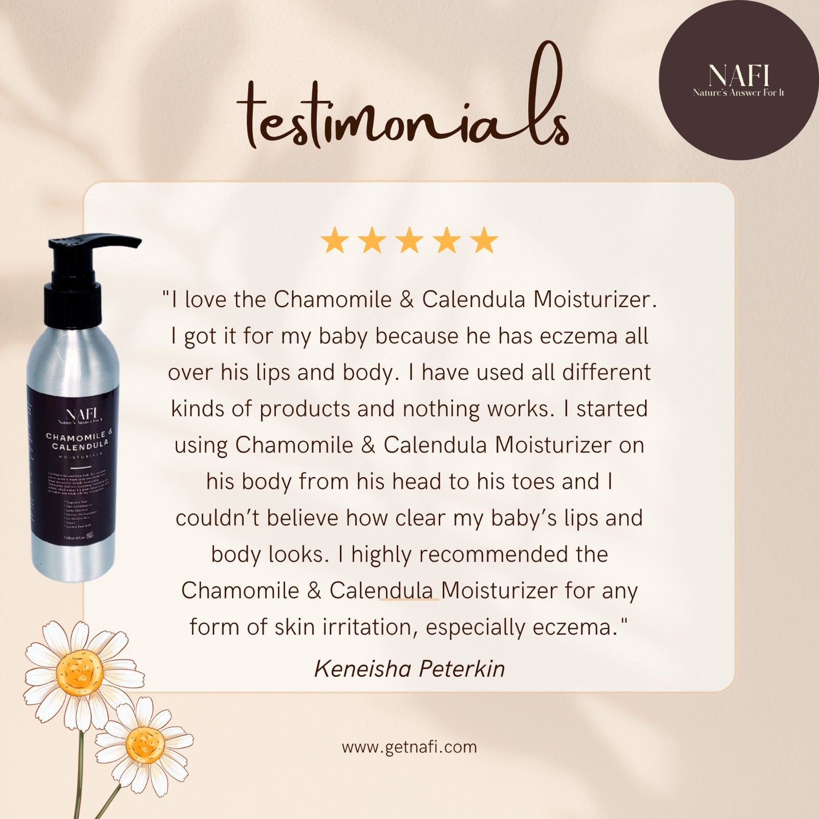 Embrace the soothing touch of nature with Zyzven Naturals and NAFI Chamomile and Calendula Head to Toe Moisturizer – a natural, gentle solution for nurturing skin from the very first day.