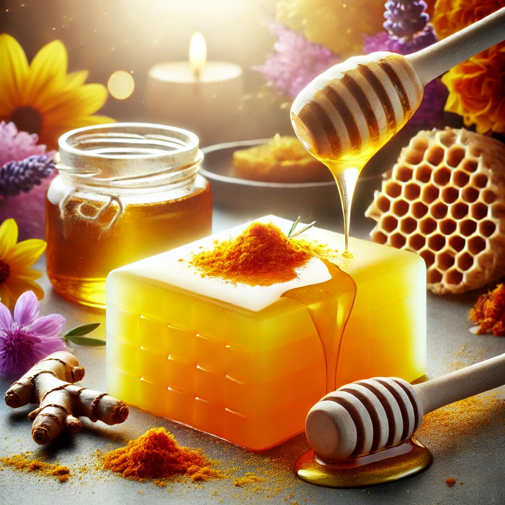 As a natural antiseptic, turmeric can combat the symptoms of acne, as well as reducing dark circles or the effects of ageing. It can also protect against sun-damaged (when used alongside traditional sun protection), soothing dry skin. Combined with the antioxidant, antiseptic and antibacterial properties of honey, this soap will leave you with hydrated skin and a clear complexion.