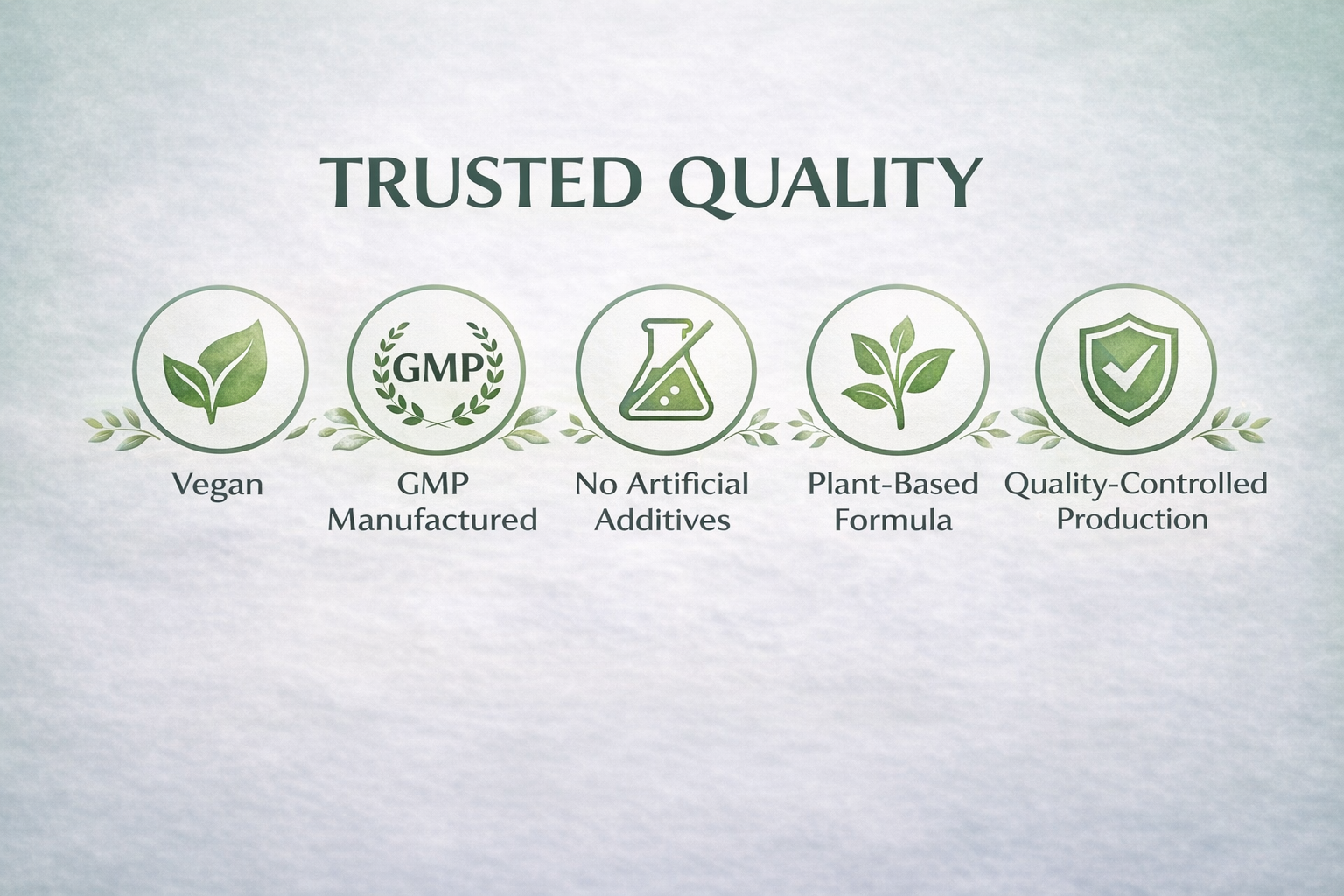This is achieved through a carefully selected combination of botanical extracts, soluble fibres, and essential trace minerals that work with the body’s natural processes, without injections, stimulants, or pharmaceutical agents.